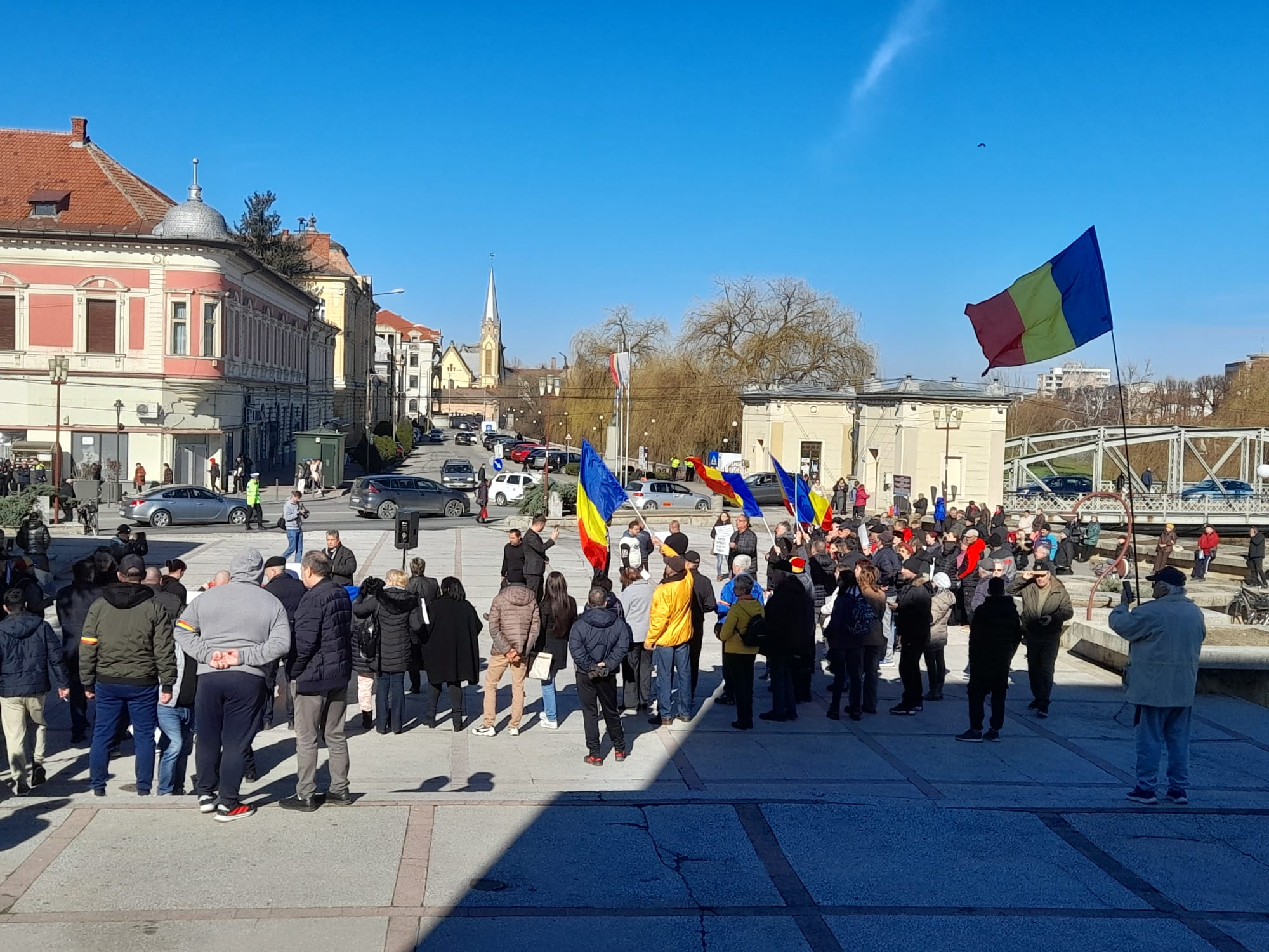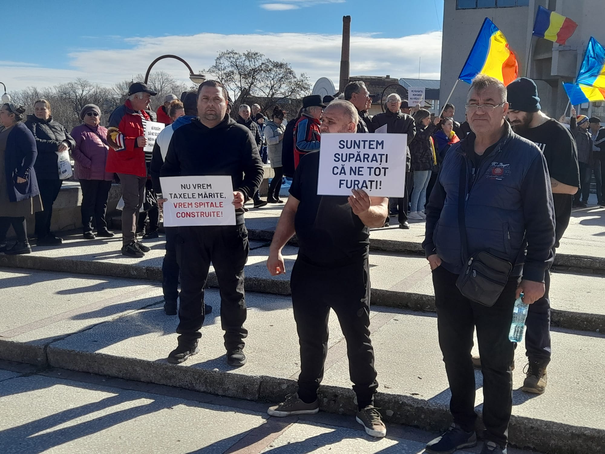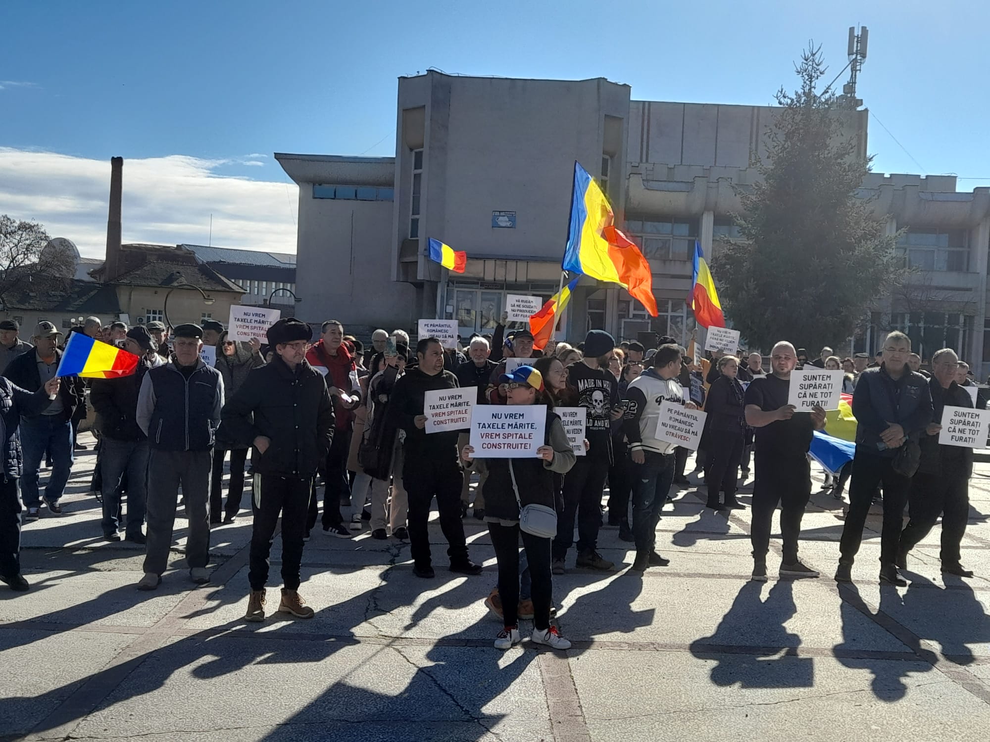 Nemulțumiți de creșterea taxelor și impozitelor locale, circao sută de lugojeni au protestat joi, 12 februarie, pe platoul Casei de Cultură a Sindicatelor, la apelul partidului AUR. Participanții au scandat lozinci antiguvernamentale și au afișat pancarte prin care au cerut servicii publice mai bune, investiții reale și respect față de contribuabili.
